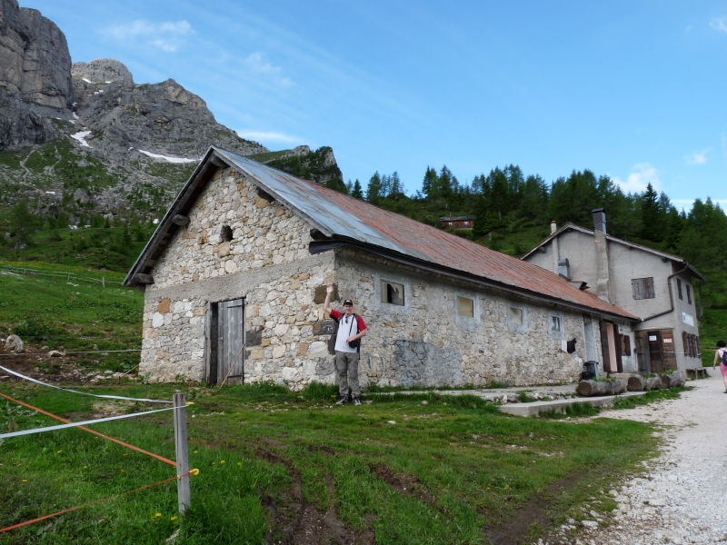 Giunti alle pendici del monte Coldai, c'è malga Pioda a circa 1800 metri di quota. Un paio di foto per darvi l'idea delle dimensioni della malga (io sono alto 193 cm).