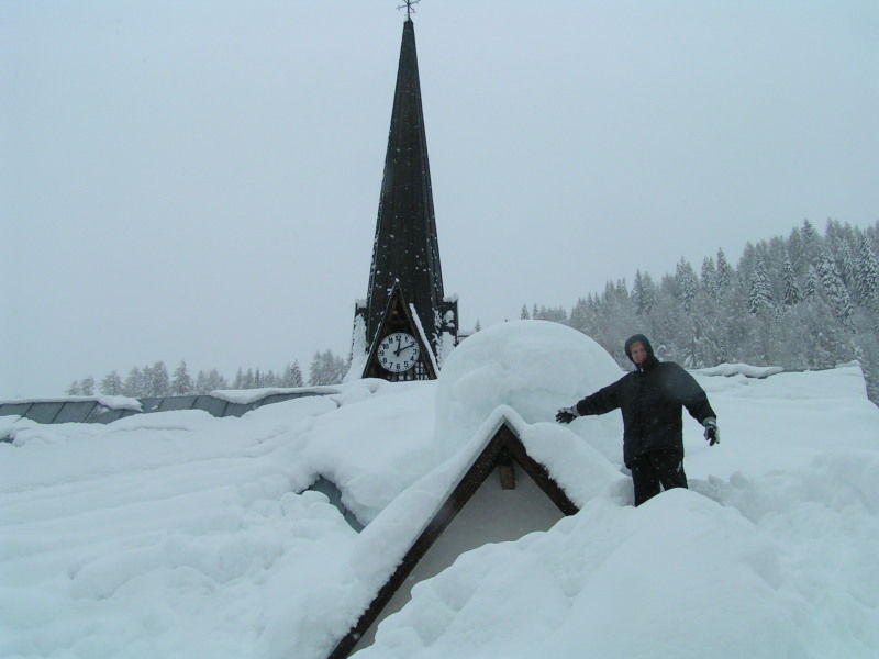 Infine, concludo questo reportage con un confronto a Pecol di Zoldo per non dimentiare i 265 cm al suolo dell'8 febbraio 2009! L'inquadratura non è la stessa, ma il tetto della chiesa è sempre quello. Fate le vostre debite proporzioni.