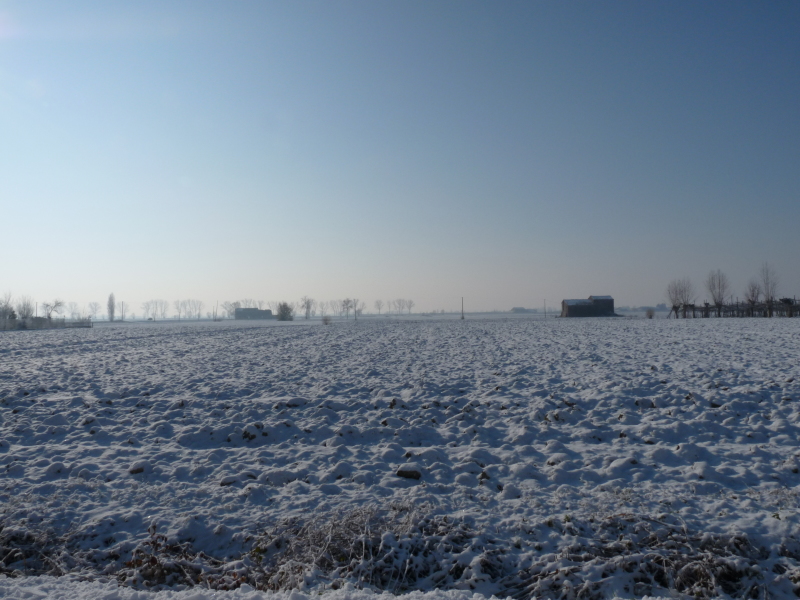 Nella notte il cielo si rasserena ed alla mattina la minima scende fino a -9°. La giornata soleggiata è perfetta per fare foto alla pianura innevata.
